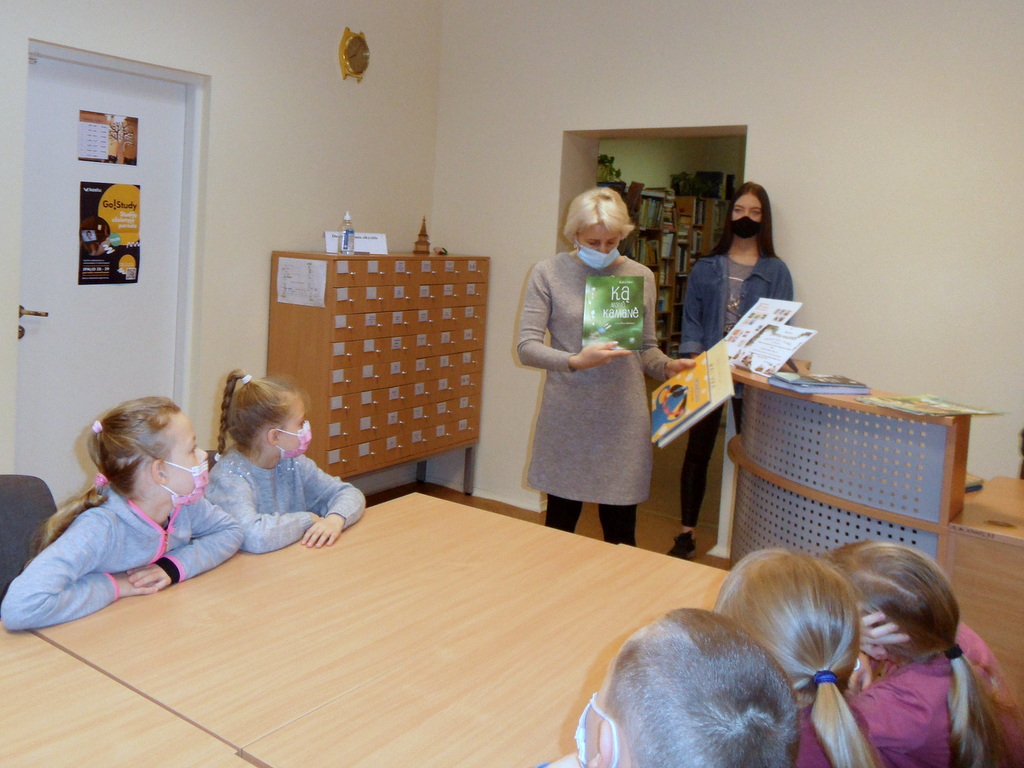 Lapkričio 30 d. aštuntokai pakvietė pirmokus į biblioteką pasiklausyti pasakų. Pirmokams buvo įdomu klausyti aštuntokų Samantos ir Klaido skaitomų pasakų. Išklausę keturių pasakų, pirmokai aptarė veikėjus, įsimintinas istorijas, turėjo galimybę pasakyti savo nuomonę, kas ir kodėl patiko ar nepatiko pasakose.