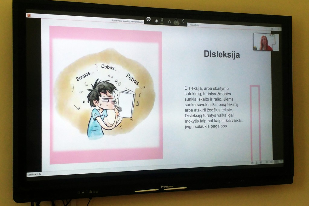 Edukacinio užsiėmimo metu lektorė, Lietuvos aklųjų bibliotekos vyr. bibliotekininkė, Neringa Antanaitienė pristatė iliustruotą žodyną apie negalias „Žmogus su negalia irgi gali“. Pasitelkdama šešis knygos herojus: Vėją, Jokūbą, Karolį, Leilą, Sarą ir Ainą, mokinius supažindino su įvairiomis negaliomis, jų apibūdinimais, negalią kompensuojančiomis priemonėmis, atkreipė dėmesį į nevartotinus negalią apibūdinančius žodžius. Siekiant didinti vaikų socialinį sąmoningumą, pranešėja pateikė žymių žmonių, turinčių negalias ar sutrikimus, pavyzdžius ir pasiekimus. Skatindama mokinių pozityvumą, savanorystę, mokinius įtraukė į diskusiją, jiems pateikė lavinamųjų užduočių: kaip priimti ir susidraugauti su negalią turinčiais žmonėmis, kuo paprastas taksi skiriasi nuo socialinio taksi, paskaityti tekstą, kaip jį mato disleksiją turintis mokinys.
