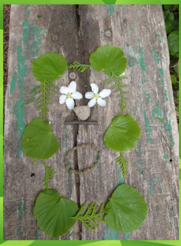 Per anglų kalbos pamoką vaikai gamtoje rinko medžiagas savo idėjos įgyvendinimui ir iš jų kūrė neįtikėtinus darbelius: mandalas, veidus, žmogeliukus, fėjas. Triūsdami prie savo darbo mokiniai ne tik galvojo, kaip pakomentuos jį knygoje, bet ir kovėsi su stipriu vėju, kuris vis grasino kūrinius sugadinti.