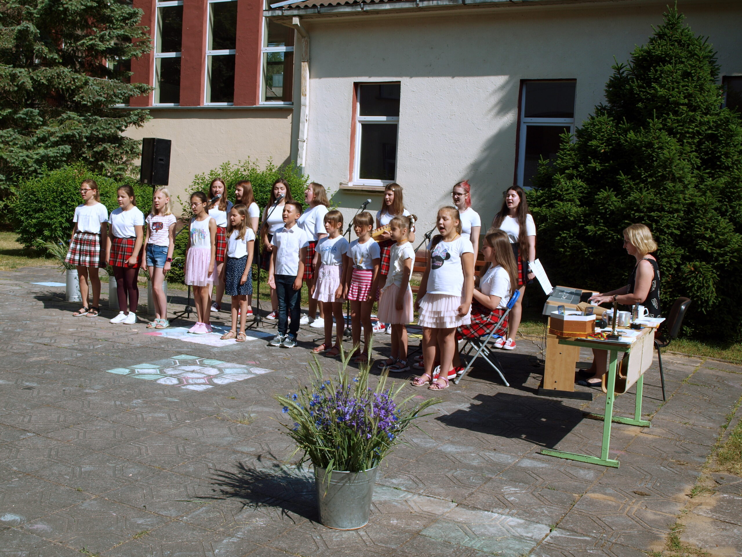 Vidiniame mokyklos kiemelyje laukė tėveliai, mokytojai, jaunesni mokyklos mokiniai. Nuotaikingą šventę sukūrė 5-ų ir 8-ų klasių mokiniai, padedami mokytojos J. L. Šatienės. Kaip visada dainomis renginį pagyvino mokytojos J. Stasiūnienės vadovaujamas ansamblis, mokytojų R. Zemlickienės ir R. Jablonskienės puošyba.