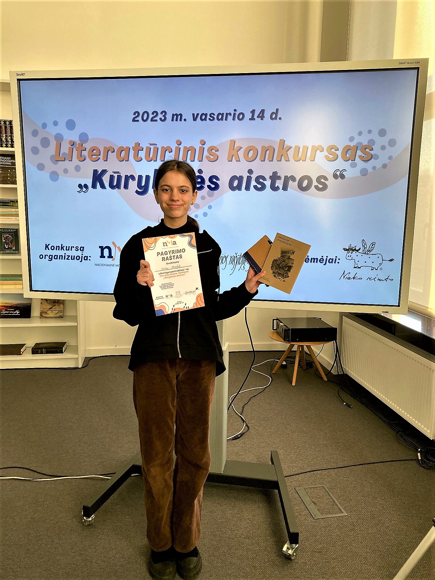 Vasario 14 dieną, kai visi įsimylėjėliai šventė Valentino dieną, Biržų „Aušros” pagrindinės mokyklos septintokė VESTINA KĖŽELYTĖ Vilniuje, Nacionalinėje Martyno Mažvydo bibliotekoje, dalyvavo respublikinio literatūrinio rašymo konkurso „Kūrybinės aistros” II etape. „Kūrybinės aistros“ – tai konkursas, kuriuo siekiama jungti tradicinę literatūrą ir modernų informacinių technologijų pasaulį; sieti literatūrines rašymo patirtis ir skaitmeninės erdvės teikiamas kūrybos galimybes. Konkursą sudarė du etapai. Pirmajame, dar gruodžio mėnesį prasidėjusiame etape visi užsiregistravę bendrojo lavinimo mokyklų 7-12 klasių mokiniai atliko kūrybinę užduotį. Pirmojo etapo rašymui pasirinktas mokslinės fantastikos žanras, kuris ypač svarbus integracijos galimybėmis: jis reikalauja literatūrinio rašymo įgūdžių, apsiskaitymo, skatina vaizduotę ir įtraukia visas šių dienų informacinių technologijų bei mokslo žinių teikiamas galimybes. Iš 86 pirmajame etape dalyvavusių kūrėjų 25 mokiniai buvo pakviesti į antrąjį etapą vasario 14-ąją.