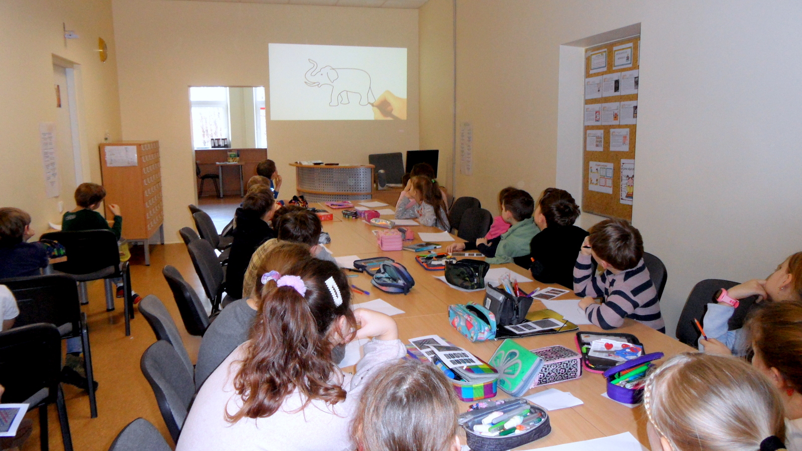 Bibliotekos vedėja mokiniams skaitė jų amžiui rekomenduojamą Giedrės Rakauskienės knygelę „Dramblys ir antis“. Antrokai susidomėję klausėsi gražios dramblio ir anties draugystės istorijos, stebėjo žaismingas šios knygutės iliustracijas, smagiai dalinosi savo mintimis apie draugystę, pasakojo, kad galima draugauti ne tik su žmonėmis, bet ir su gyvūnais.