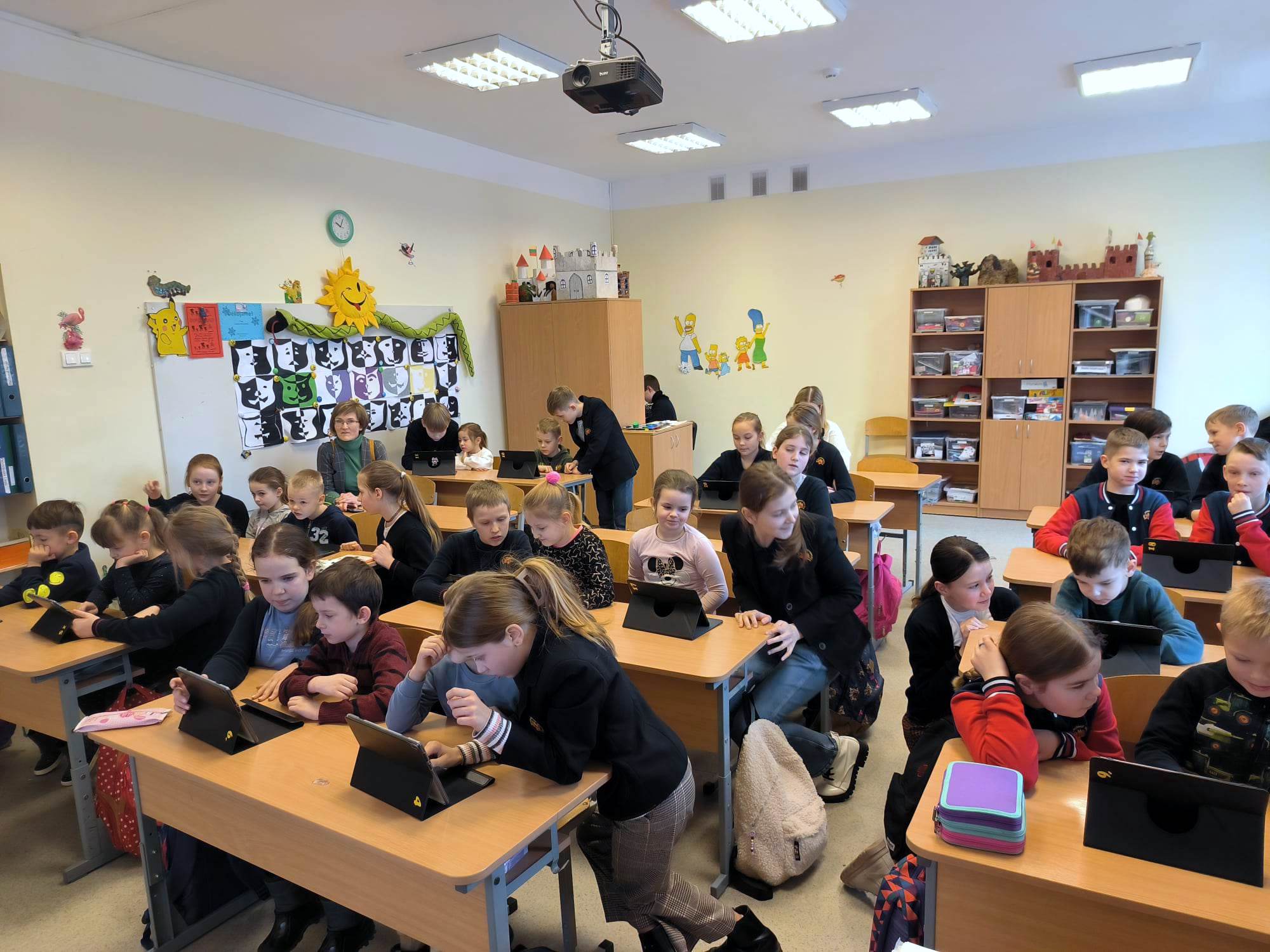 Ketvirtokai būsimiems pirmokėliams dainavo, grojo dūdelėmis, rodė trumpus vaidinimus, kartu atliko Kahoot viktorinos užduotis.