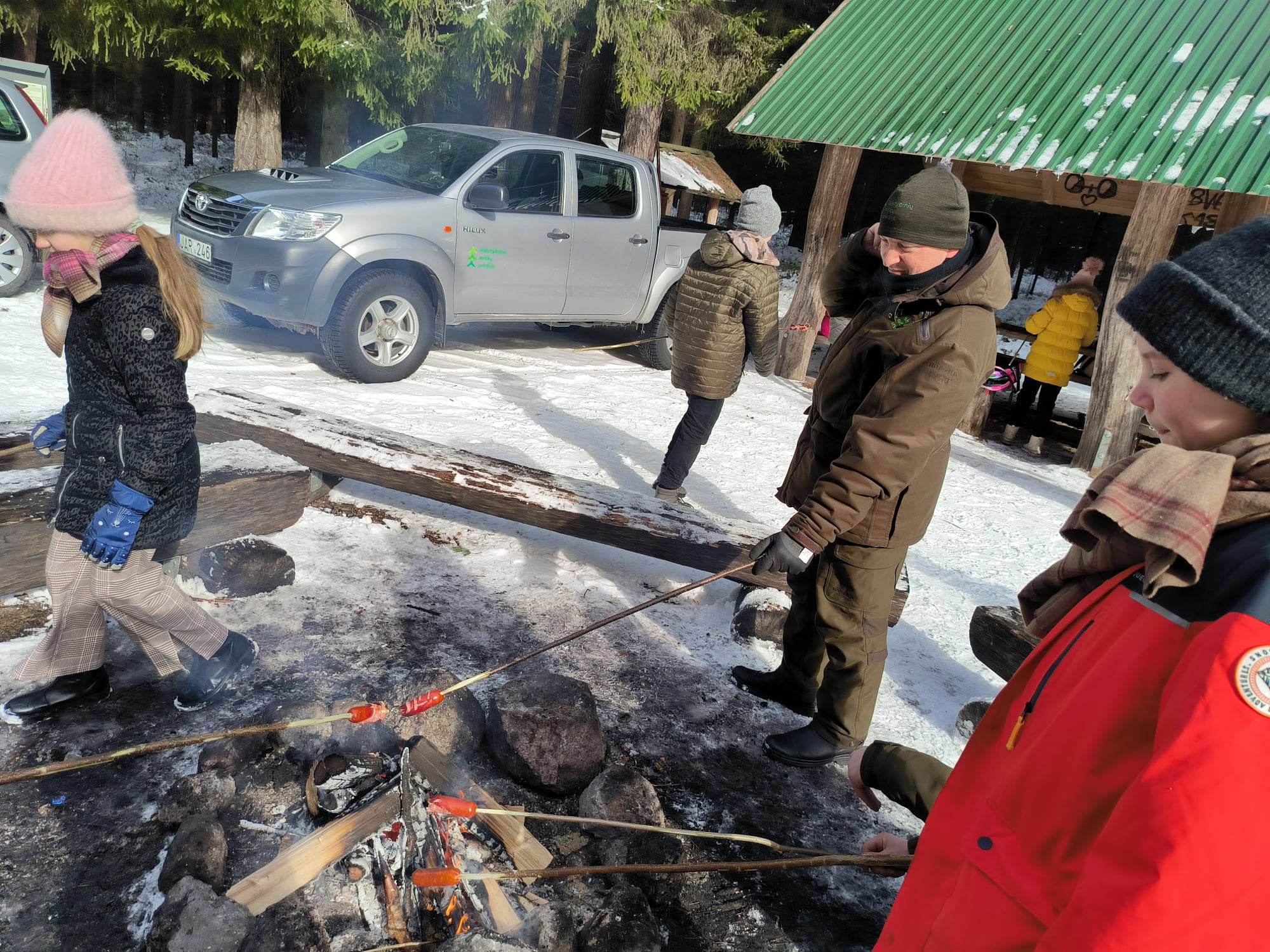Po gerų darbų gardžiai pakvipo paruošta karšta žolelių arbata ir ant laužo kepamos dešrelės.