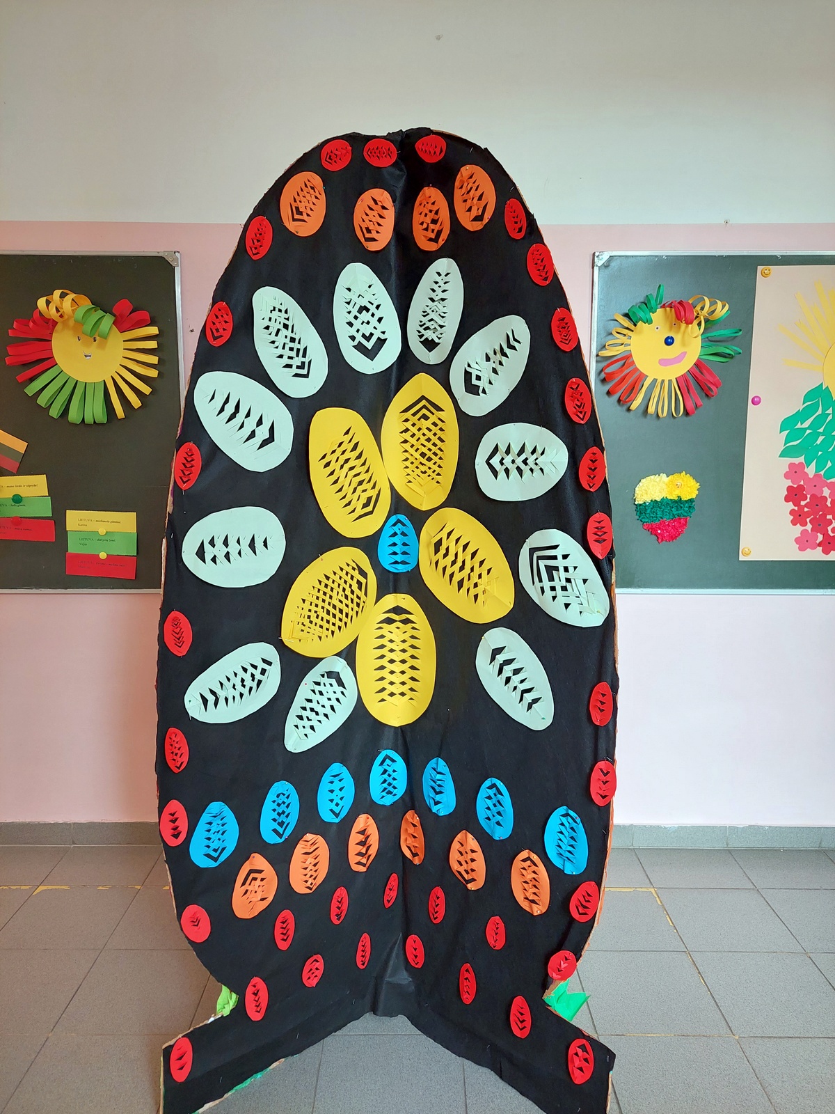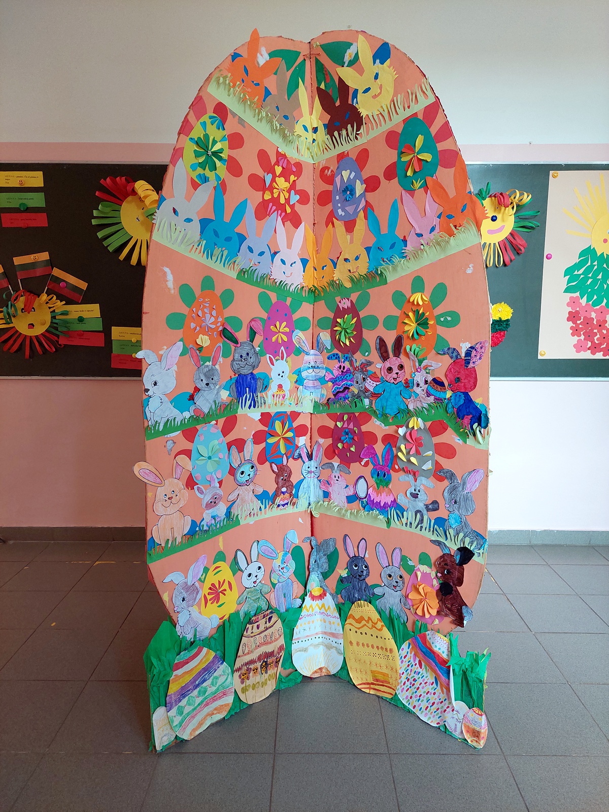 Sukurtas Didysis margutis papuošė mokyklos erdvę, jo skaitmeninė nuotrauka išsiųsta labdaros ir paramos fondo „Švieskime vaikus“ organizuojamam respublikiniam projektui „Vaikų Velykėlės 2023“.