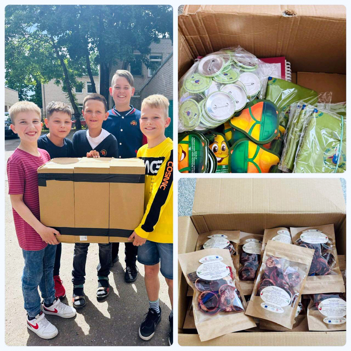 Kiekvienas vaikas ir mokytoja gavome puikių prizų: kaklo movą, džiovintų obuolių, pagardintų juodaisiais serbentais, užrašų knygelę, lipdukus, ženkliuką, atšvaitą.