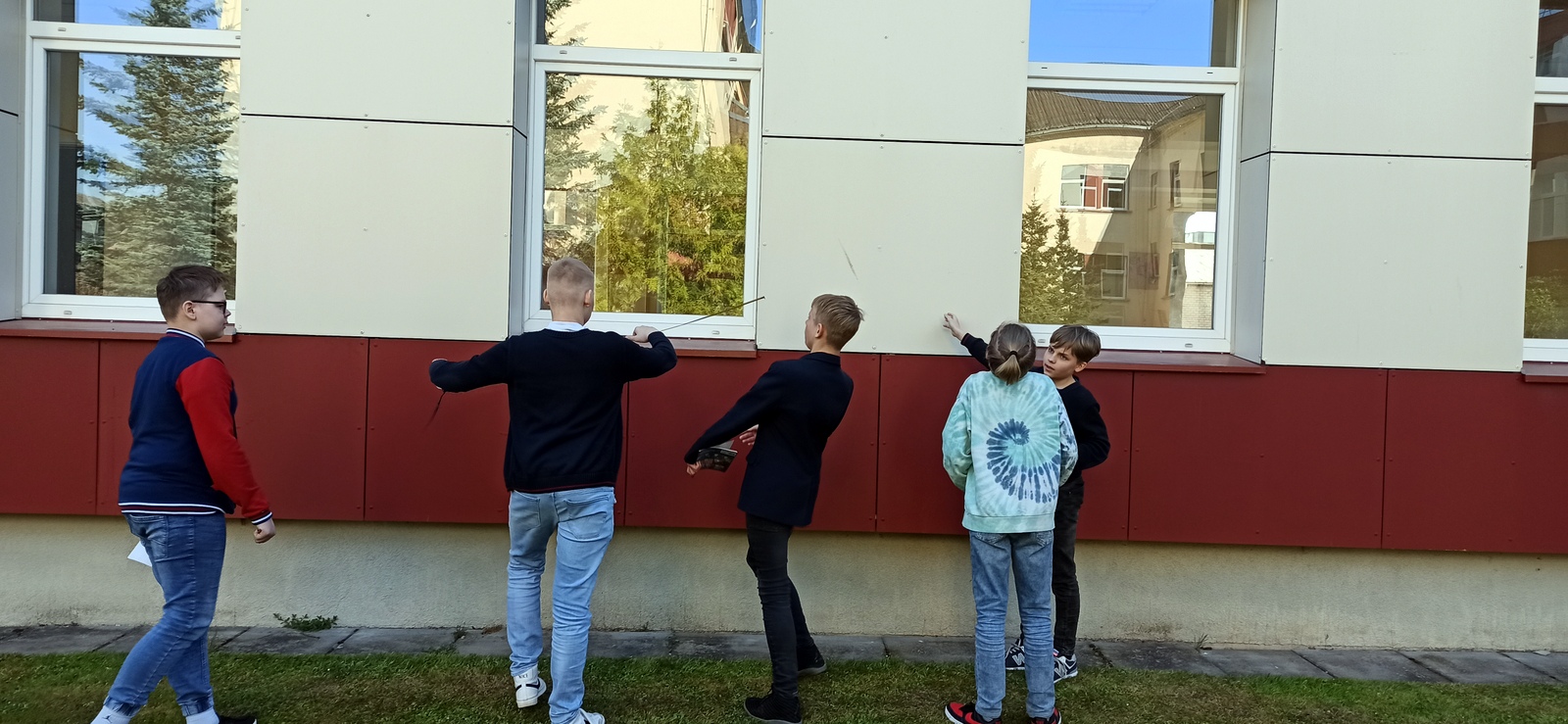 8b klasės mokiniai fizikos pamokos metu lauke matavo garso sklidimo laiką, skaičiavo, kokiu greičiu per stadioną sklinda klasės draugo sukelta garso banga. Žaidimo forma imitavo garso bangą, įsitikino, kad ji išilginė.
