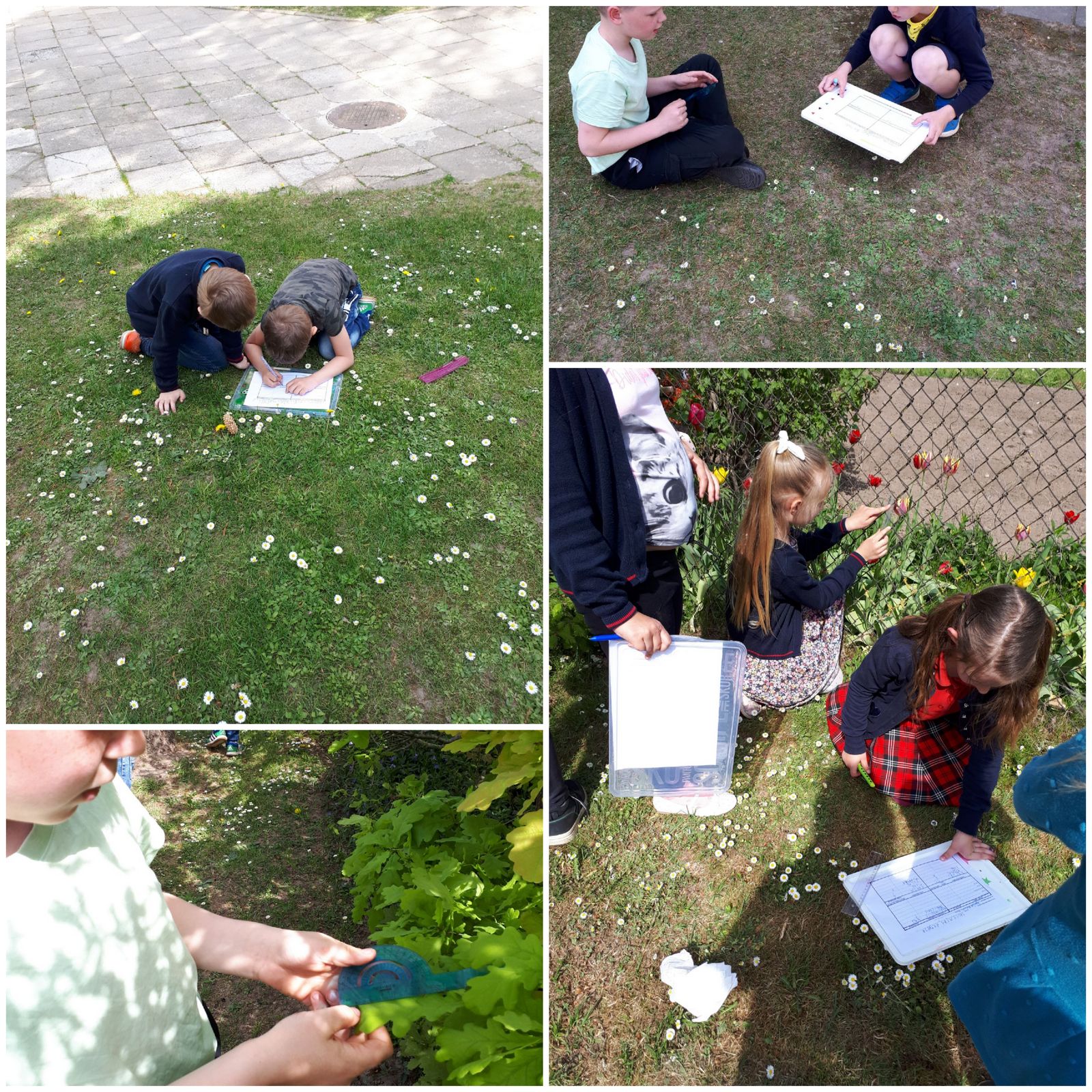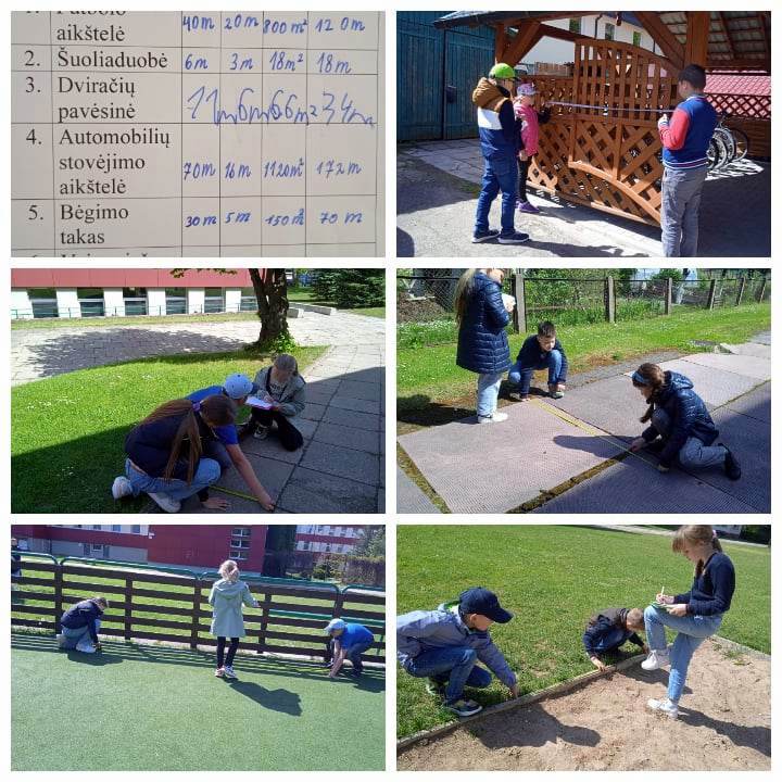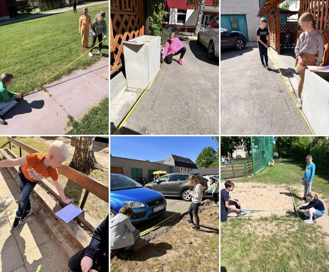 Pirmų klasių mokiniai skaičiavo pavasarinius žiedus, jų lapus, lygino žiedų spalvas ir dydį, antrokai ieškojo gamtoje geometrinių figūrų, lygino su savo tiksliai iš popieriaus iškirptomis figūromis. Trečiokai skaičiavo pasirinktų objektų perimetrą, o ketvirtokai tyrinėjo, kas gyvena mokyklos pievose. Lygino Apaščios ir Agluonos upių tėkmių greitį ir gylį.