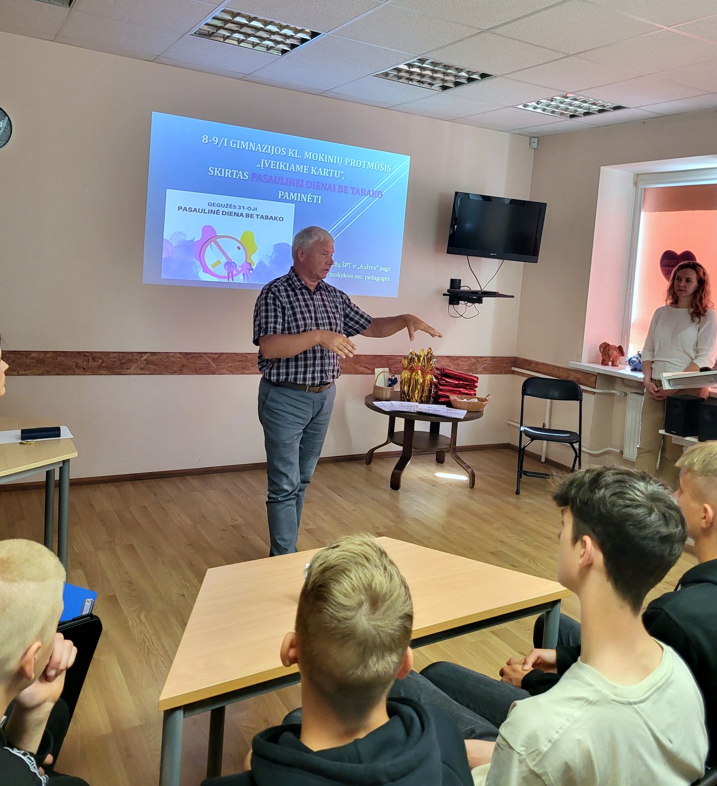 Renginio pradžioje dalyvius sveikino Biržų švietimo pagalbos tarnybos direktorė A. Januševičiutė ir Biržų r. savivaldybės administracijos Švietimo, kultūros ir sporto skyriaus vyr. specialistas M. Nemanis. Biržų r. Visuomenės sveikatos biuro specialistė E. Gervienė kalbėjo apie šiuolaikinių ir paplitusių tabako gaminių vartojimo žalą jaunuolių sveikatai.