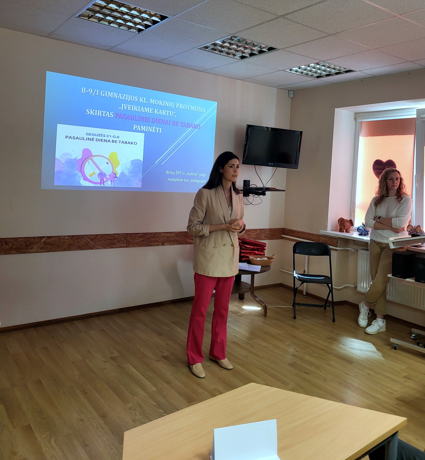 Gegužės 31 d. Biržų švietimo pagalbos tarnyboje įvyko 8-9/ I gimnazijos klasių mokinių renginys „Įveikiame kartu“, skirtas Pasaulinei dienai be tabako paminėti. Renginį organizavo Biržų švietimo pagalbos tarnybos socialinė pedagogė Asta Vaicekavičienė ir Biržų „Aušros“ pagrindinės mokyklos socialinė pedagogė Asta Kregždienė.