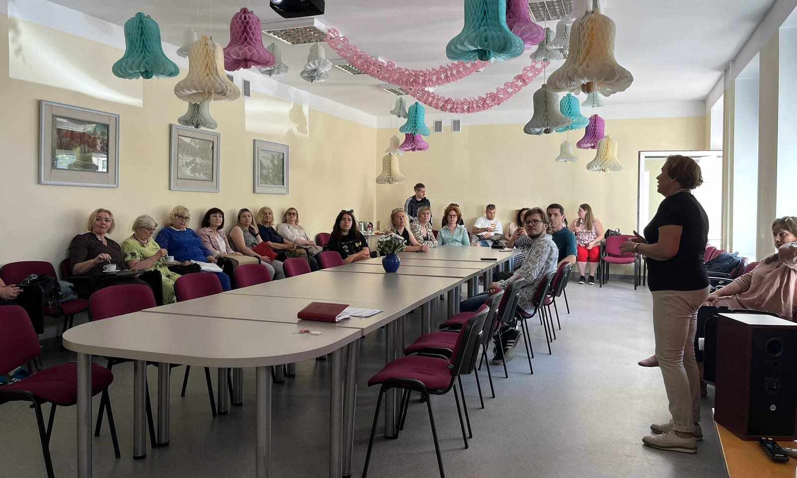 Mokyklos atnaujinto ugdymo turinio diegimo komandos narės – direktoriaus pavaduotoja ugdymui D. Laumienė, IT mokytoja E. Kulbienė, užsienio kalbos (anglų) mokytoja V. Jasilionienė pasidalino patirtimi, kokią praktinę naudą teikė komandos dalyvavimas NŠA organizuotame tyrime dėl pasirengimo diegti atnaujintą ugdymo turinį, kokius darbus atliko Metodikos taryba, metodinės grupės, pristatė metodikos tarybos ir UTA organizuotų metodinių dienų turinį.
