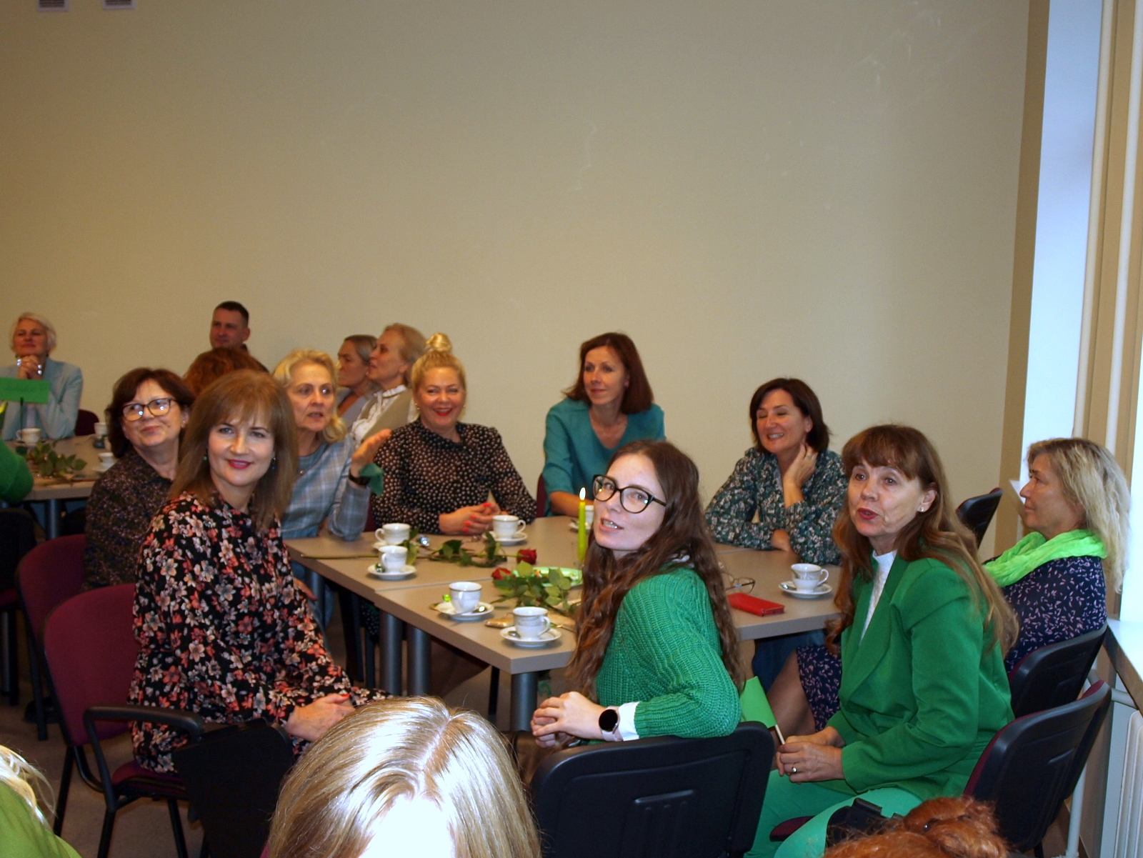 Po pamokų mokytojai buvo pakviesti į konferencijų salę, į šventę „Žalia žalia per visą dangų“. Ant stalų degančios žalios žvakės, žaliose lėkštelėse saldainiai žaliais popierėliais ir paruoštos žalios vėliavėlės išdavė – bus kažkas. Kažkas kitaip. Kažkas žaliai.