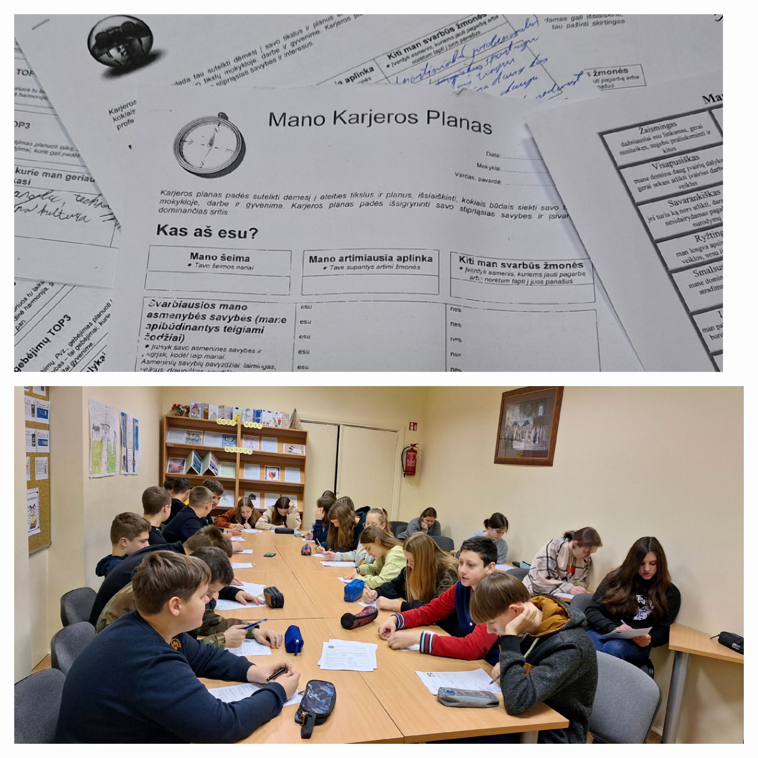 Sausio 12, 24, 25 dienomis vyko karjeros ugdymui užsiėmimas 8-ų klasių mokiniams „Mano karjeros planas“. Užsiėmimo metu mokiniai papildė savo karjeros planą, kurį buvo sukūrę septintoje klasėje. Mokiniai peržvelgė savo asmenines savybes, vertybes, interesus. Jie patikslino svarbiausius praeitų metų pasiekimus, iš naujo įsivertino, ką naujo sužinojo apie save. Ypatingas dėmesys buvo skiriamas tikslų peržiūrai bei naujų savo mokymosi ir asmeninių tikslų išsikėlimui.