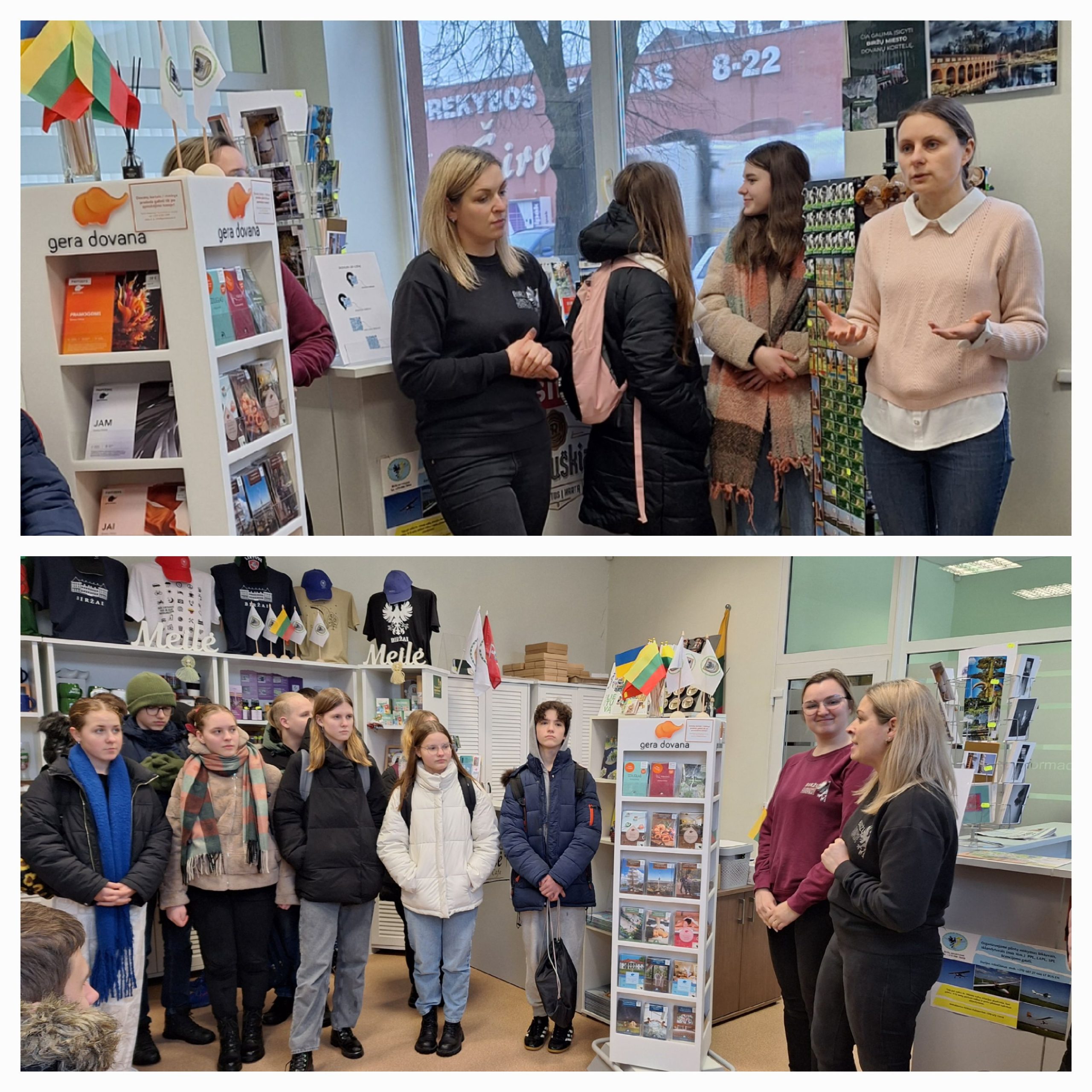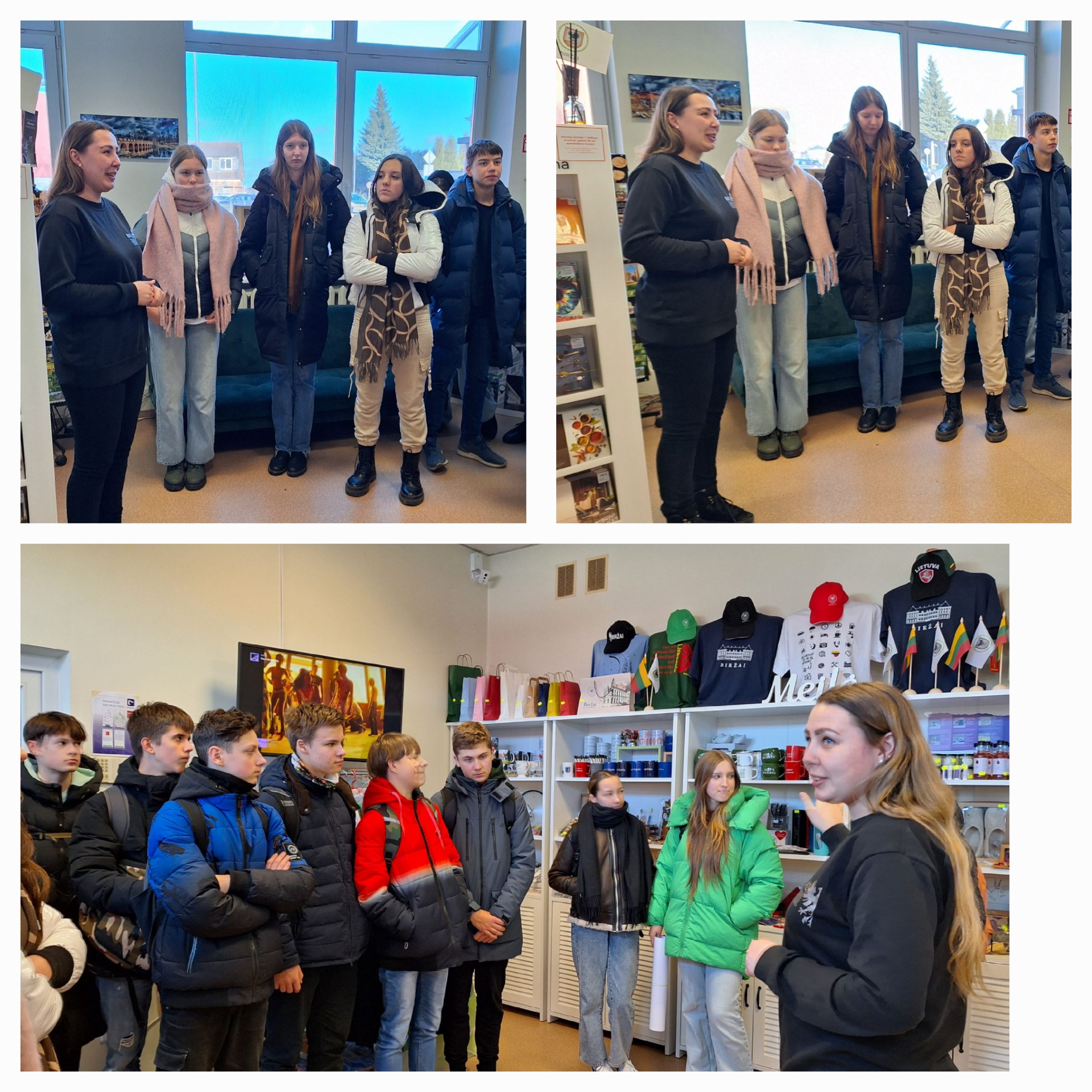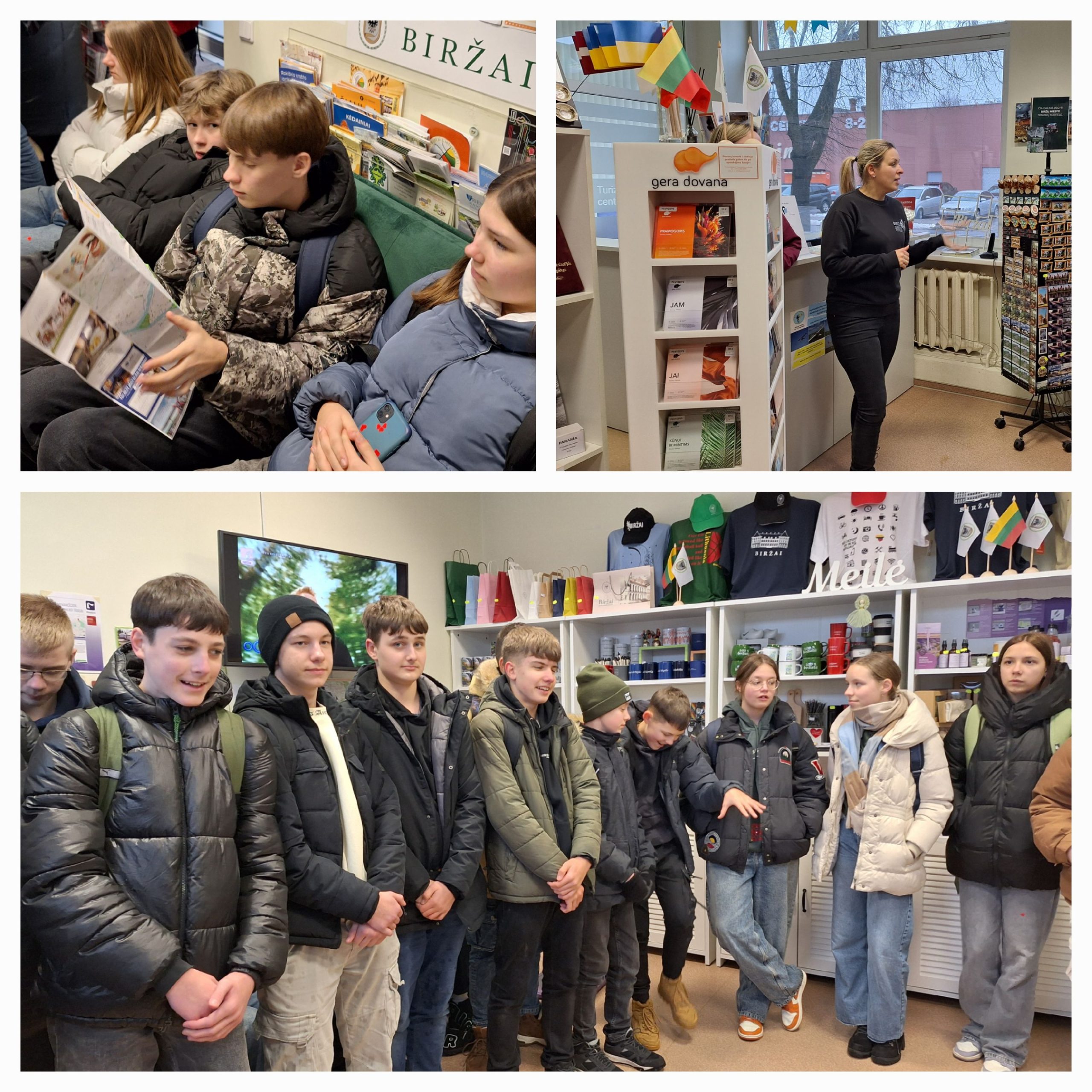 Vasario 2, 13, 14 dienomis aštuntų klasių mokiniai vyko į Biržų turizmo ir verslo informacijos centrą. Šio centro turizmo specialistės aštuntokus pasitiko su klausimu: kodėl atėjote į šį centrą? Paaiškėjo, kad dauguma mokinių nežinojo, nei kad toks centras Biržuose yra, nei kur jis yra, nors įmonė gyvuoja 25 metus. Turizmo specialistės pristatė centro vykdomą veiklą, papasakojo, kokių specialybių žmonės čia dirba, bei paminėjo, kad turizmas labai populiari, daugiausiai atnešanti pelno ekonomikai sritis. Specialistės pasidalino savo istorijomis, kaip jos atėjo į šį darbą, kokias studijas baigė, ką reikia ir kur reikia studijuoti, norint dirbti Turizmo ir verslo informacijos centre.