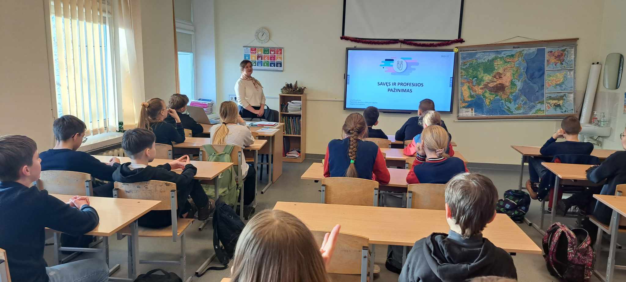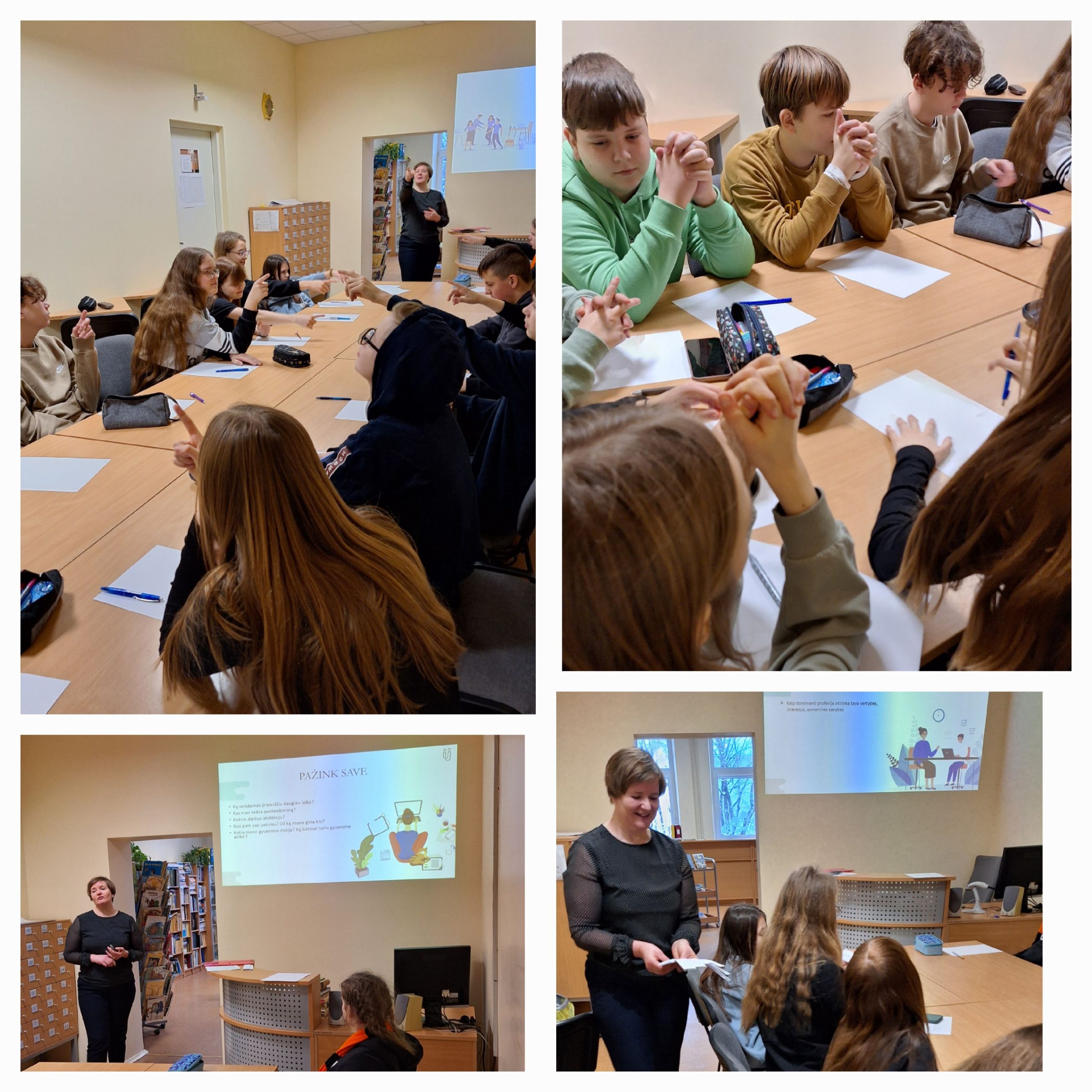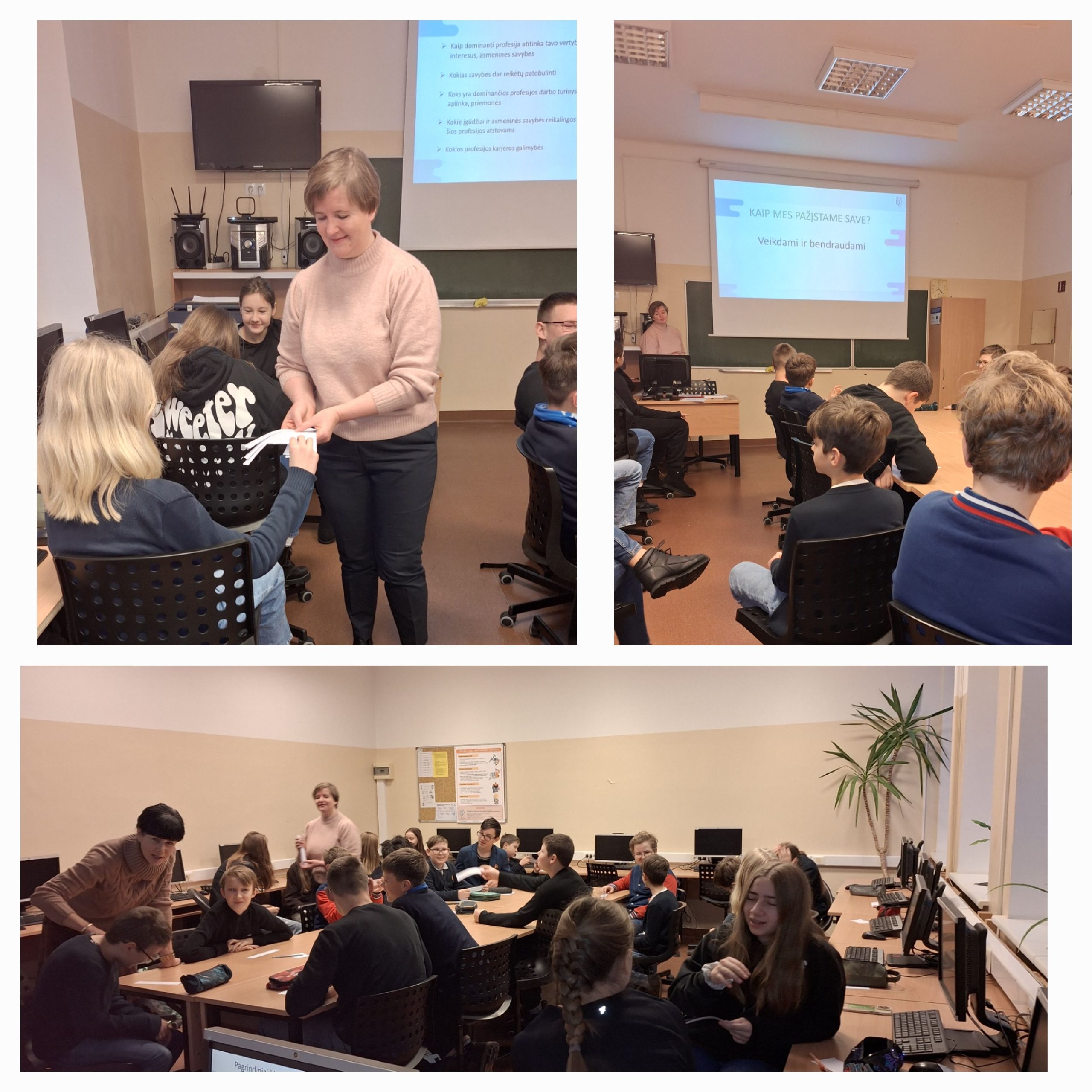 Gruodžio ir vasario mėn. šeštų klasių mokiniams vyko karjeros užsiėmimas „Profesijų ir savęs pažinimas“. Užsiėmimus vedė Panevėžio karjeros planavimo skyriaus karjeros konsultantė Lina Krauklytė. Užsiėmimų pradžioje mokiniai atlikdami įvairius judesius nusistatė savo asmenybės testą. Po testo atlikimo konsultantė mokiniams papasakojo, kokiais būdais ir kodėl jiems svarbu pažinti save. Užsiėmimo antroje pusėje šeštokai sužinojo, kiek pasaulyje yra profesijų, kokios profesijos paklausios Biržų rajone. Specialistė patarė, į kokius pagrindinius klausimus turėtų atsakyti mokiniai pirmiausiai rinkdamiesi sau profesiją. Įpusėjus užsiėmimui, mokiniai žaidė profesijų žaidimą „Ar gerai pažįsti profesiją“. Išsitraukę profesiją, turėjo apibūdinti, kokia tai profesija, kokią veiklą šios profesijos atstovas atlieka, kokios reikalingos asmenybės savybės dirbant tą darbą.