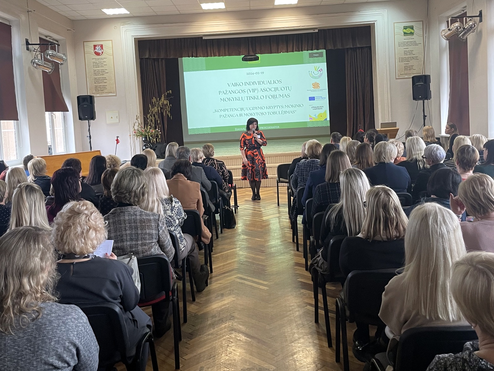 Vasario 19 dieną mokyklos direktoriaus pavaduotojos ugdymui V. Švykienė ir D. Laumienė dalyvavo Vaiko individualios pažangos (VIP) asocijuotų mokyklų tinklo forume Šiaulių Salduvės progimnazijoje. Forumo tema: ,,Kompetencijų ugdymo kryptys: mokinio pažanga ir mokytojo tobulėjimas“. Plenariniame posėdyje pristatyti pranešimai: