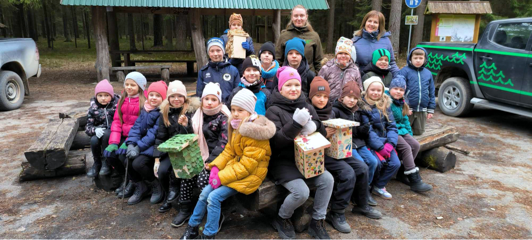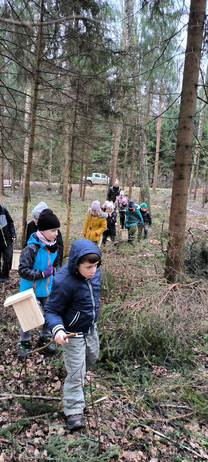 1 a klasės mokiniai priėmė iššūkį – dalyvauti inkilų puošimo konkurse, o papuoštus inkilus pakabinti Užušilių miške.