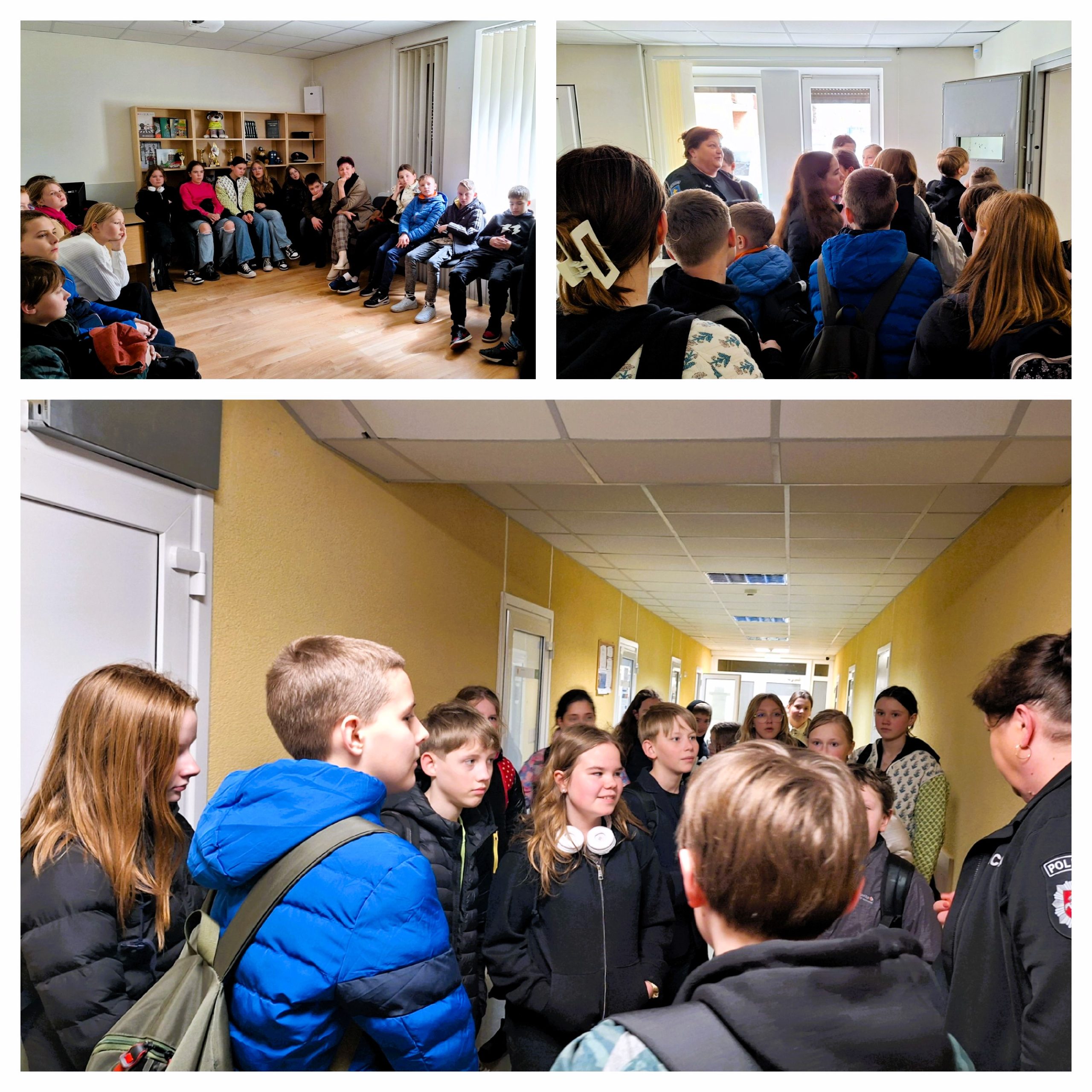 Per ekskursiją po komisariato patalpas penktokai turėjo galimybę pažvelgti į policijos darbo kasdienybę iš vidaus. Jie apžiūrėjo vaikų apklausos kambarį bei kitas tarnybines patalpas, kuriose vyksta svarbios procedūros ir veikla.