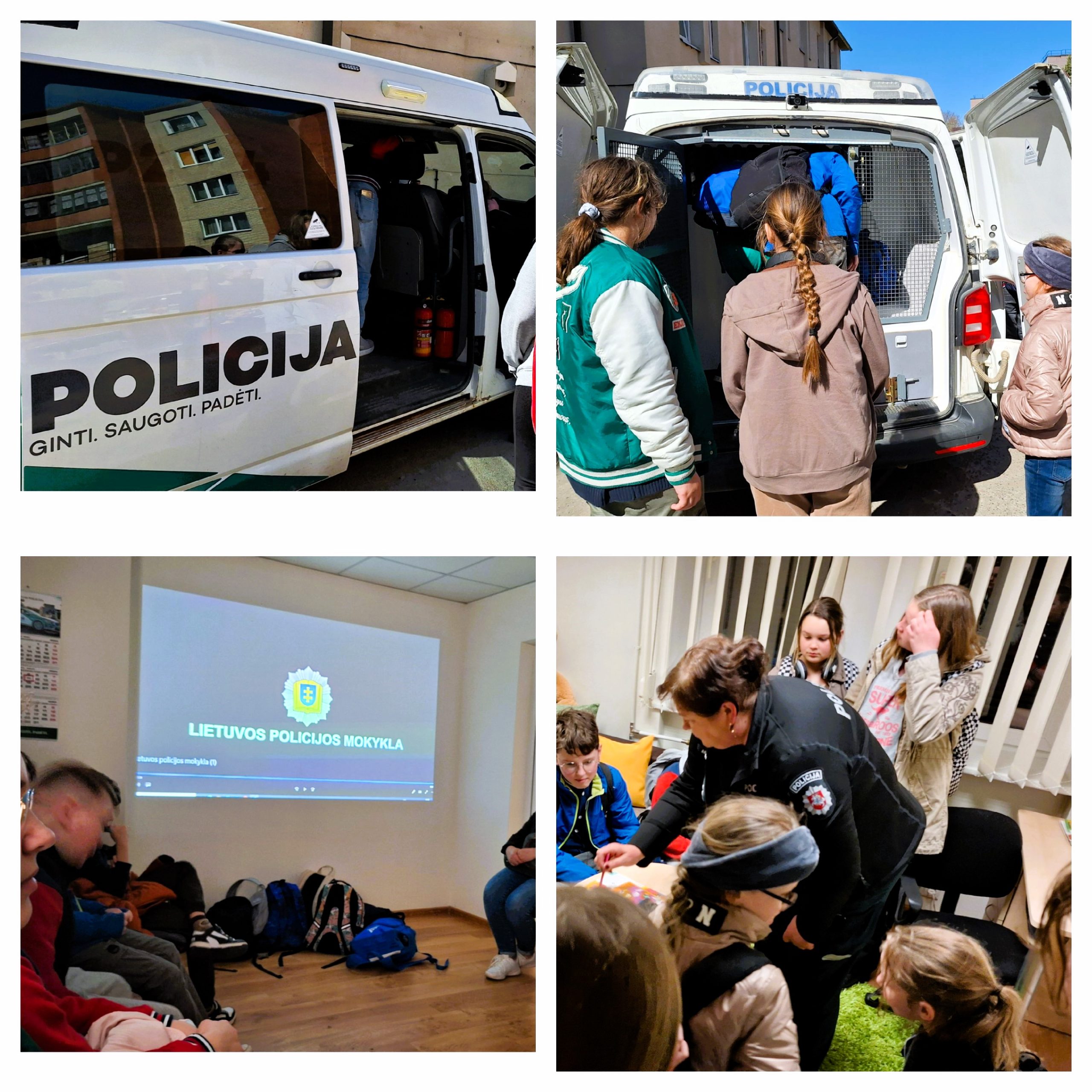 Pasidalindama savo patirtimi, vyresnioji tyrėja papasakojo apie įvairias policijos darbo sritis ir apie tai, kokie žmonės dirba šioje institucijoje, taip pat parodė įvairių filmukų apie policijos darbą.