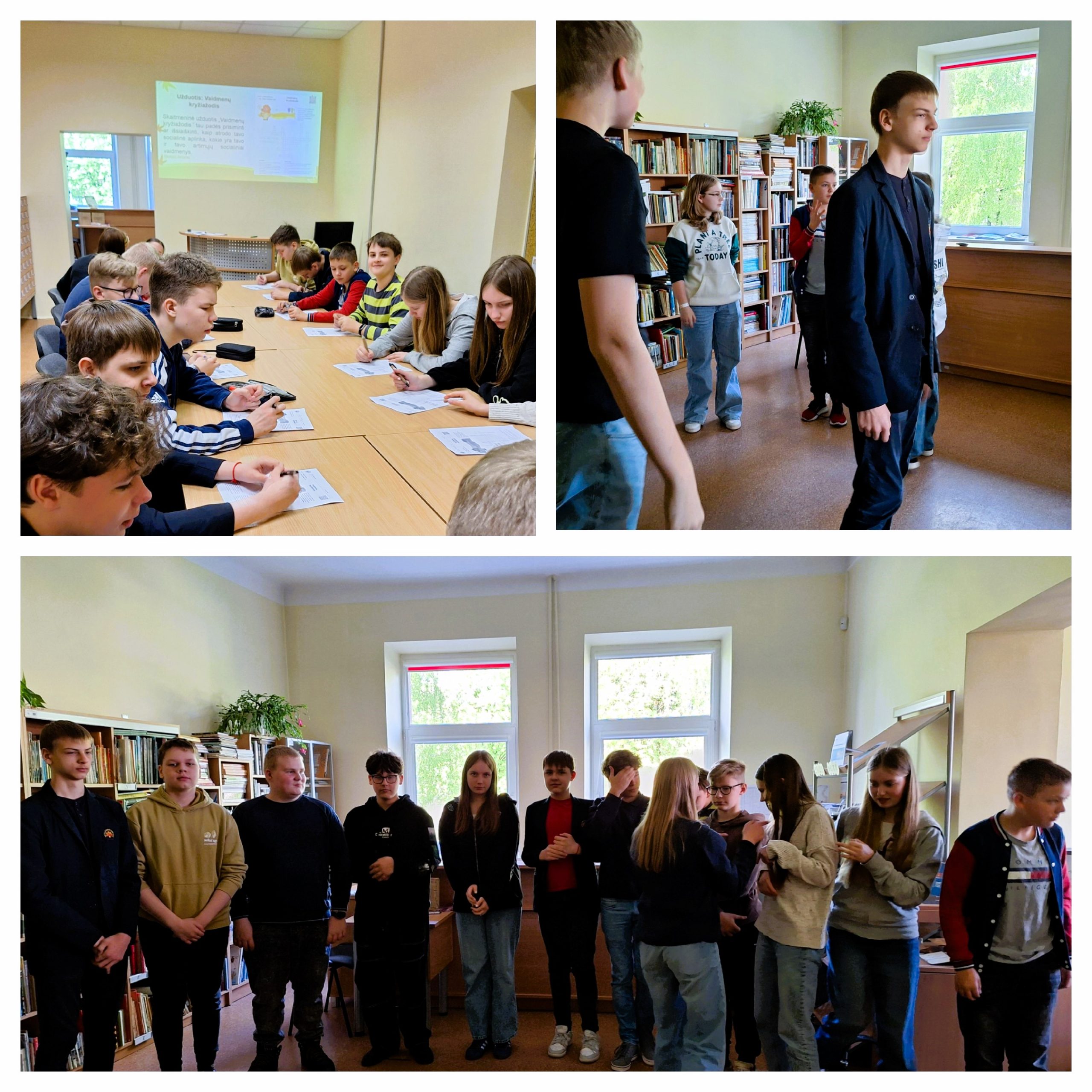 Mokiniai aktyviai dalyvavo žaidime „Mano vieta“, kuris padėjo jiems suprasti savo socialinę aplinką ir vaidmenis. Taip pat jie atliko praktinę užduotį „Vaidmenų kryžiažodis“, kuri padėjo jiems išsiaiškinti savo ir artimųjų socialinius vaidmenis. Kita praktinė užduotis „Mano socialinis tinklas“ leido jiems vizualiai pavaizduoti savo socialinę aplinką, įrašant artimiausių, gana artimų ir tiesiog pažįstamų žmonių vardus.
